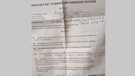Μια κάτοικος του κοσμοπολίτικου χωριού, προκειμένου να δικαιολογήσει την μετακίνηση από το σπίτι της στο σπίτι φιλικού της προσώπου προκειμένου να περάσουν μαζί Ανάσταση και Πάσχα, επέλεξαν Β4 Μετακίνηση για παροχή βοήθειας σε ανθρώπους που βρίσκονται σε ανάγκη», γράφοντας από κάτω, «Είναι μεγάλο το αρνί και δεν μπορούν να το φάνε μόνοι τους».