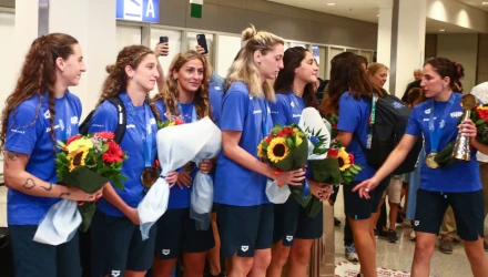 Στην Ελλάδα έφτασαν νωρίς το πρωί τα χρυσά κορίτσια της Εθνικής Ομάδας Πόλο, μετά την άνοδο τους στο πρώτο σκαλί του βάθρου στο παγκόσμιου πρωτάθλημα υγρού στίβου στη Σιγκαπούρη.