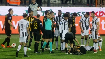 Ένα δεύτερο σημείο είναι η βίαιη απώθηση στον Βασίλη Δημητριάδη που του «χρεώνεται» και είναι ένα από τα δύσκολα σημεία της υπόθεσης. Το πιο σημαντικό όμως είναι πώς θα αξιολογήσει ο αθλητικός δικαστής τα όσα αναφέρει ο Κομίνης για την καταγγελία του εκπροσώπου της ΠΑΕ ΑΕΚ, Μηνά Λυσσάνδρου «Μετά την βίαιη είσοδο του κύριου Σαββίδη ο οποίος οπλοφορούσε και τα όσα επακολούθησαν μαζί με τους συνοδούς του στον αγωνιστικό χώρο (τα οποία αναγράφονται παραπάνω) εμείς ως ΑΕΚ αδυνατούμε να εισέλθουμε στον αγωνιστικό χώρο λόγω μεγάλης έντασης και ανασφάλειας και οι ποδοσφαιριστές της ομάδας μας είναι τρομοκρατημένοι από τα ανωτέρω γεγονότα».