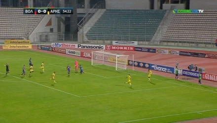 Νωρίτερα, ο Βόλος έχασε τεράστια ευκαιρία να πάρει κεφάλι στο σκορ, όμως ο Φαν Βέερτ έστειλε την μπάλα στο δοκάρι.