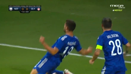 Με τους καλύτερους οιωνούς άρχισε ο επαναληπτικός αγώνας του Ολυμπιακού με την Νέφτσι Μπακού, καθώς ευτύχησε να πάρει κεφάλι στο σκορ με τον Μασούρα στο 15΄.