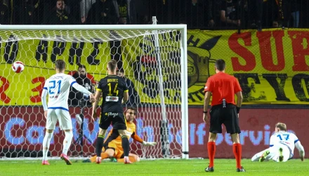 Μετά από αδράνεια στην άμυνα των «κιτρίνων», ο Σάλιακας βρήκε κενό χώρο και έκανε τη σέντρα, ο Σνάιντερ όντας αφύλαχτος στο πρώτο δοκάρι έστειλε την μπάλα στα δίχτυα, βάζοντας από νωρίς σε θέση οδηγού την ομάδα του.