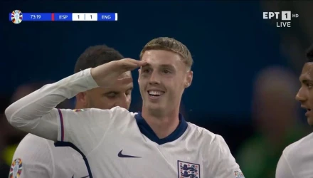 Κόντρα στη ροή του αγώνα η Αγγλία ισοφάρισε σε 1-1 στο 73΄. Ο Σάκα γύρισε την μπάλα, ο Μπέλιγχαμ την έστρωσε με τη μία στον νεοεισελθών Πάλμερ, ο οποίος με δυνατό σουτ έστειλε την μπάλα στα δίχτυα του Σιμόν.