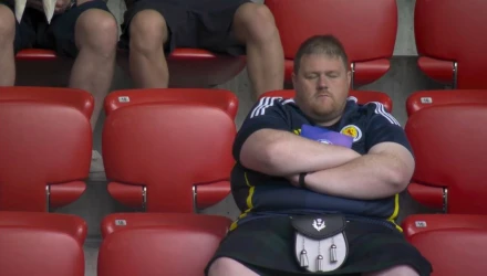 Μερικοί από τους φιλάθλους των Σκωτσέζων κουράστηκαν από το ταξίδι και την αναμονή και επέλεξαν να εκμεταλλευτούν τα λεπτά που τους χώριζαν από το εναρκτήριο λάκτισμα για να αποκοιμηθούν και να ανανεώσουν τις δυνάμεις τους για το 90λεπτο που θα ακολουθήσει.
