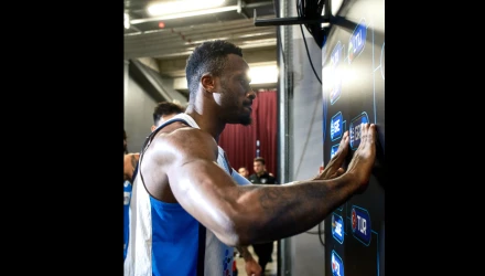 Στο γνωστό πλέον τελετουργικό της διοργάνωσης, κάθε ομάδα που παίρνει την πρόκριση κολλάει το αυτοκόλλητό της στον σχετικό πίνακα του Eurobasket 2025 και ήταν σειρά του Θανάση Αντετοκούνμπο να κολλήσει το αυτοκόλλητο της Ελλάδας στους «8», απέναντι από αυτό της Λιθουανίας, την οποία θα συναντήσει με στόχο να περάσει στους «4».