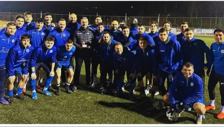 Η πρώτη ομάδα των Ακριτών και ο προπονητής τους Νίκος Μίντης που είχε τα γενέθλια του