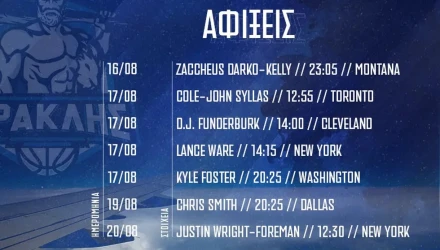 Πρώτος θα φτάσει στη Θεσσαλονίκη ο Ζακ Ντάρκο-Κέλι, ο οποίος ταξιδεύει από τη Μοντάνα και φτάνει μέσω Μονάχου στο «Αεροδρόμιο Μακεδονία» το Σάββατο (16/8, 23:05). Η Κυριακή θα είναι μια μέρα πολλαπλών αφίξεων, καθώς τέσσερις παίκτες θα πατήσουν Θεσσαλονίκη. Ο λόγος για τους Τζον Σάιλας (12:55, από Τορόντο), Ντι Τζέι Φάντερμπεργκ (14:00, από Κλίβελαντ), Λανς Γουέρ (14:15, από Νέα Υόρκη) και Κάιλ Φόστερ (20:25, από Ουάσινγκτον).