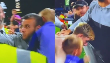 He dropped his kid just to hug Anthony Gordon 💀😂