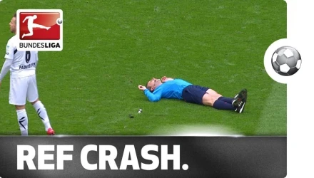 Ο ποδοσφαιριστής των φιλοξενούμενων έπεσε πολύ άτσαλα πάνω στον διαιτητή Γκουίντο Γουίνκμαν και... κατόρθωσε να τον σωριάσει στο έδαφος.
