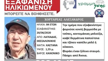 Συναγερμός έχει σημάνει για την εξαφάνιση ενός ηλικιωμένου από την περιοχή του Λαγκαδά Θεσσαλονίκης.