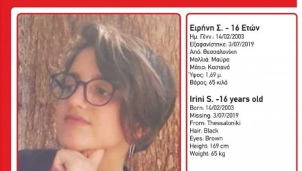 Πρόκειται για την Ειρήνη Σ., 16 ετών, τα ίχνη της οποίας χάθηκαν το απόγευμα της 3ης Ιουλίου 2019 και ώρα 19:30 από την περιοχή της Πυλαίας.
