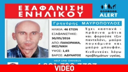 Ο Γρηγόρης Μαυρόπουλος, 46 ετών, εξαφανίστηκε στις 30/05/16 από το Πανόραμα Θεσsσαλονίκης.