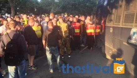 Άνδρες της αστυνομίας αλλά και εκπρόσωποι της γερμανικής ομάδας ελέγχουν εξονυχιστικά τους φιλάθλους που κατευθύνονται προς το γήπεδο, ώστε να μην καταφέρει κανένας Έλληνας οπαδός άλλης ομάδας να παρεισφρήσει.