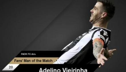 Toν Αντελίνο Βιεϊρίνια ανέδειξαν ως Fans Man of the Match οι οπαδοί του ΠΑΟΚ, για την εμφάνιση του απέναντι στον Άρη στο πλαίσιο της 22ης αγωνιστικής του πρωταθλήματος της Super League.