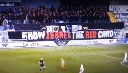 «SHOW ISRAEL THE RED CARD», σε ελληνική μετάφραση σημαίνει Δείξτε την κόκκινη κάρτα στο Ισραήλ!