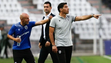 Για το αν σκέφτεται να αλλάξει κάτι για να μη δημιουργεί ευκαιρίες ο αντίπαλος: «Σήμερα παίξαμε με μια ομάδα δυνατή, που παίζει πάρα πολύ καλά. Μέχρι τώρα, η ομάδα έχει δεχτεί ένα γκολ από αυτογκόλ, μάλιστα. Αυτό που μπορώ να πω σε τέτοιες ερωτήσεις, είναι ότι γνωρίζω καλύτερα από όλους τους ποδοσφαιριστές που έχω στη διάθεση μου. Ο σχηματισμός με τον οποίο αγωνιζόμαστε είναι σχηματισμός ο οποίος προσπαθεί να αναδείξει περισσότερο τα χαρακτηριστικά των ποδοσφαιριστών μας, όσο γίνεται περισσότερο και να κάνει την ομάδα, όσο πιο επιθετική γίνεται. Αυτό που πρέπει να κάνουμε όλοι, είναι να ανοίξουμε λίγο περισσότερο το μυαλό μας και να δούμε τι προσπαθεί να κάνει η ομάδα.
