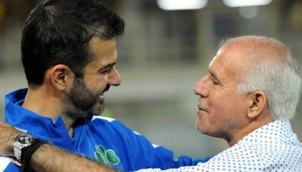Θερμός ήταν ο εναγκαλισμός του Νίκου Αναστόπουλου με τον Αντρέα Στραματσόνι, πριν την έναρξη του αγώνα στο «Κλεάνθης Βικελίδης».