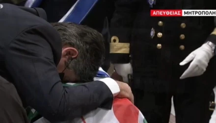 Τραγική φιγούρα ο σύζυγός της ο οποίος μην μπορώντας να συγκρατήσει τη συγκίνησή του και τα δάκρυά του, αγκάλιασε το φέρετρο και το χτύπησε με τη γροθιά του.