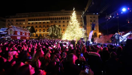Φωταγωγήθηκε το χριστουγεννιάτικο δέντρο στην Αριστοτέλους