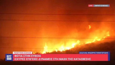 Η φωτιά παρότι δεν απειλεί κατοικημένη περιοχή, προκαλεί ανησυχία καθώς καίει σε δύσβατο σημείο της κορυφογραμμής, στο οποίο είναι αδύνατο να προσεγγίσουν οι επίγειες δυνάμεις της Πυροσβεστικής.
