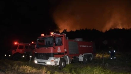 Η φωτιά προκλήθηκε υπό αδιευκρίνιστες μέχρι στιγμής συνθήκες λίγο μετά τις 22:00 και σύμφωνα με τις έως τώρα πληροφορίες δεν φαίνεται να απειλεί μονές.