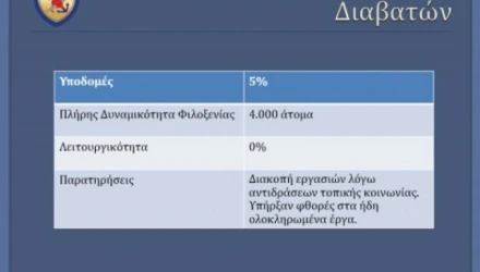Οι εργασίες στις υποδομές που την περασμένη Δευτέρα κατά τη διάρκεια της συνέντευξης του υπουργού Εθνικής Άμυνας Πάνου Καμμένου ήταν 20%, κατέβηκαν στο 5%.