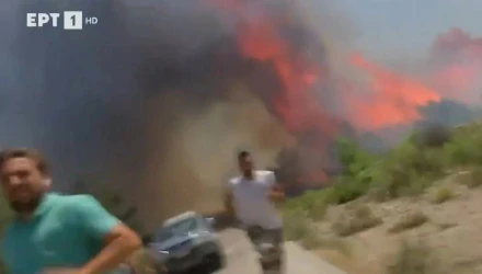 «Φύγετε!»: Συνεργείο της ΕΡΤ και εθελοντές τρέχουν να γλιτώσουν από τη φωτιά