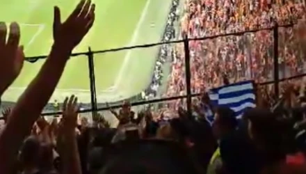 Μάλιστα, οι οπαδοί του Δικεφάλου ύψωσαν και ελληνικές σημαίες, όπως μπορείτε να δείτε και στο παρακάτω βίντεο που εξασφάλισε το Metrosport.gr μέσα από την εξέδρα.