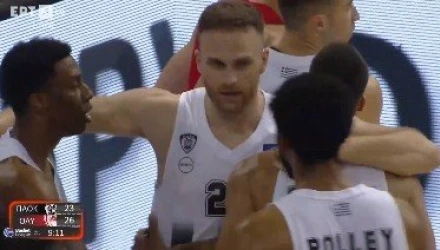 Οι δύο παίκτες αντάλλαξαν κάποια «γαλλικά», με τους πιο ψύχραιμους να μπαίνουν στη μέση και τους δύο να χρεώνονται από μία τεχνική ποινή. Τα αίματα «άναψαν», με τον Γιώργο Μπαρτζώκα να τραβάει στον πάγκο τον Λαρεντζάκη.