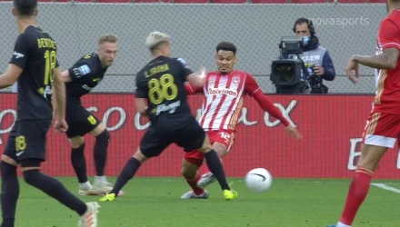 Ο Ολυμπιακός προηγήθηκε με τον Μασούρα ανοίγοντας το σκορ αλλά τα δεδομένα άλλαξαν στο 40' όταν ο Λαλά έκανε ένα πολύ επικίνδυνο φάουλ πάνω στον Σάσα και δικαιολογημένα ο διαιτητής τον απέβαλε.