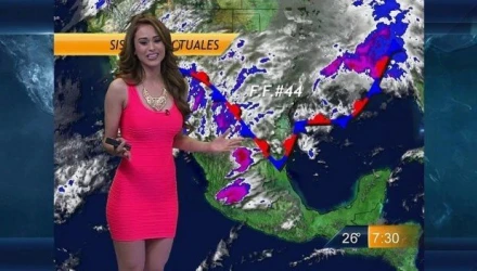 Η Yanet Garcia, το πιο διάσημο «κορίτσι του καιρού» στο Μεξικό (με 1,6 εκατ. followers στο Instagram), ενημερώνει τους τηλεθεατές για την πρόγνωση της μετεωρολογικής υπηρεσίας και εκτοξεύει το θερμόμετρο σε επίπεδο… καύσωνα.