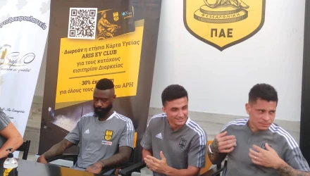 Σύσσωμο το ποδοσφαιρικό τμήμα του Άρη έδωσε το παρών στην 86η ΔΕΘ. Μάλιστα, ο Μανού Γκαρθία στο περιθώριο των δηλώσεων έστειλε μήνυμα ενόψει του ντέρμπι με τον Ολυμπιακό στο Βικελίδης για την 5η αγωνιστική της Σούπερ Λιγκ 1.