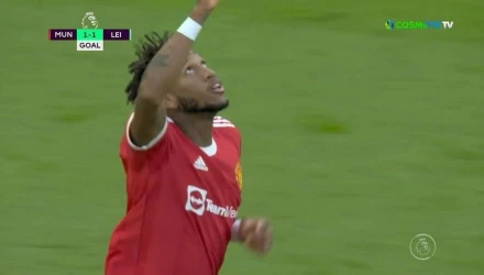 Τρία λεπτά αργότερα ήρθε η απάντηση για τους «κόκκινους διαβόλους», με τον Μπρούνο Φερνάντες να κάνει προσποίηση και σουτ, απέκρουσε ο Σμάιχελ, στην επαναφορά ο Φρεντ ισοφάρισε σε 1-1.