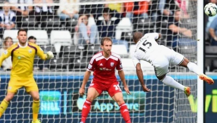 Η Σουόνσι βρίσκεται στην κορυφή της Πρέμιερ Λιγκ, προηγούμενη της Γουέστ Μπρομ με 2-0 στο ημίχρονο, με τον παίκτη των Ουαλών Γουέιν Ρούτλετζ να σκοράρει α λα Μπρους Λι έξω από την μεγάλη περιοχή.