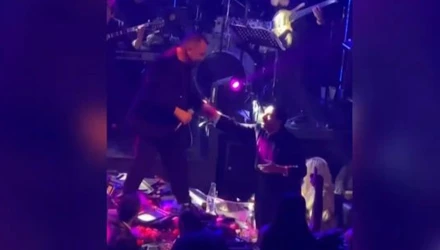 Ο ιερέας βρέθηκε στο κέντρο που τραγουδούν ο Ζαφείρης Μελάς και ο Δημήτρης Χρυσοχοΐδης και δεν δίστασε να... πλησιάσει την πίστα και να πετάξει λουλούδια στους τραγουδιστές.