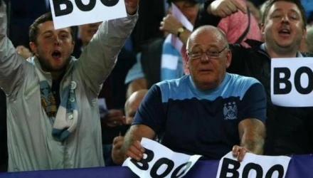 Οι οπαδοί της Σίτι αντέδρασαν με αυτόν τον τρόπο στο πρόστιμο ύψους 50 εκατομμυρίων λιρών που επιβλήθηκε στην ομάδα τους από την ευρωπαϊκή ομοσπονδία για παραβίαση του Financial Fair Play. Ακόμη υπήρξε και απαγόρευση μετακίνησης φιλάθλων της ομάδας του Μάντσεστερ για το παιχνίδι με την ΤΣΣΚΑ στη Μόσχα, εξαιτίας των ρατσιστικών συνθημάτων που ακούστηκαν στο Etihad Stadium. Δηλώσεις υπέρ των φίλων της Σίτι έκανε ο αρχηγός, Βινσέντ Κομπανί, παίρνοντας ξεκάθαρη θέση: «Είναι αδικαιολόγητη η τιμωρία της UEFA. Δεν έχει κάτι ιερό ο ύμνος του Champions League. Αν κάτι συμβαίνει που ενοχλεί τους οπαδούς είναι ελεύθεροι να δείξουν την δυσφορία τους».