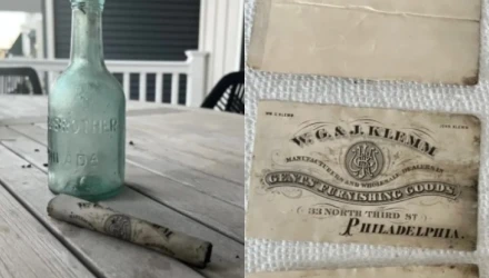 Μέσα στο μπουκάλι υπήρχαν δύο κομμάτια χαρτιού. Το ένα φαινόταν να είναι μια επαγγελματική κάρτα για την «W.G. & J. Klemm», μια εταιρεία ειδών επίπλωσης για κυρίους που λειτουργούσαν τα αδέλφια William και John Klemm στη Φιλαδέλφεια μέχρι το 1881, σύμφωνα με τα αρχεία του Philadelphia Inquirer.