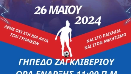 To 1o τουρνουά γυναικείου ποδοσφαίρου θα γίνει την Κυριακή τις 11.00 στο γήπεδο Ζαγκλιβερίου. Το τουρνουά διοργανώνεται από την αντιδημαρχία αθλητισμού του δήμου Λαγκαδά σε συνεργασία με τη γυναικεία ομάδα του Απόλλωνα Ζακλβερίου.
