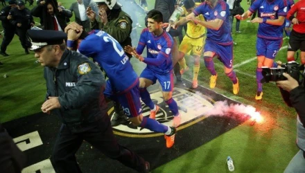 Η ατμόσφαιρα είναι αποπνικτική λόγω των δακρυγόνων που έπεσαν στην Τούμπα και χαρακτηριστικό είναι ότι οι παίκτες του Ολυμπιακού έπιαναν τις μύτες τους κατά την αναχώρησή τους.