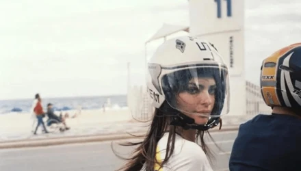 Το σετ αποτελείται από ένα στενό λευκό baby tee με της σημαία της Βραζιλίας τυπωμένη στο πίσω μέρος και ένα λευκό, κοντό σορτς με τη ίδια σημαία σε μικρότερο μέγεθος. Στα στιγμιότυπα βλέπουμε την Emily Ratajkowski να κάθεται στο πίσω μέρος μιας μηχανής, φορώντας και το κράνος της, με τον ιδρυτή της Mirror Palais, Marcelo Gaia, να οδηγεί.