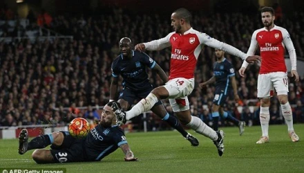 Στην πρώτη της τελική ευκαιρία στο παιχνίδι η Άρσεναλ κατάφερε να ανοίξει το σκορ απέναντι στη Μάντσεστερ Σίτι στο 33΄. Μετά από πάσα του Οζίλ (14η ασίστ στο πρωτάθλημα), ο Γουόλκοτ με υπέροχο σουτ στην αριστερή γωνία του Χαρτ έδωσε προβάδισμα στους «κανονιέρηδες». Μάλιστα αυτό ήταν το πρώτο του τέρμα μετά την εντός έδρας ήττα από τον Ολυμπιακό (2-3) για τη 2η αγωνιστική του Τσάμπιονς Λιγκ.