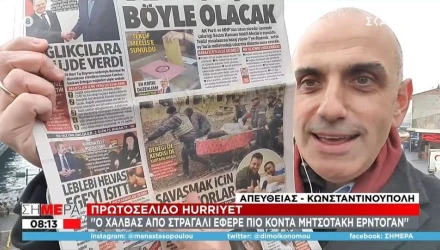 Στο πρωτοσέλιδο της η Hurriyet ανέφερε ότι ο χαλβάς από στραγάλι έφερε πιο κοντά Μητσοτάκη & Ερντογάν. Επίσης σημειώνει ότι η Εμινέ Ερντογάν είχε δώσει τη συνταγή στην Τουρκική εφημερίδα