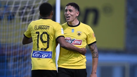 Οι φιλοξενούμενοι στις καθυστερήσεις του πρώτου μέρους (45+2') κατάφεραν να κάμψουν την αντίσταση της Λαμίας, με τον Κάλενς να στέλνει τη μπάλα στα δίχτυα του Κοσέλεφ, για το 1-0 υπέρ της ΑΕΚ.