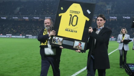 Μετά την παρουσία του στην μπουτίκ, ο 33χρονος μεσοεπιθετικός βρέθηκε στο κέντρο του γηπέδου και πριν την σέντρα της σπουδαίας αναμέτρησης με τον ΠΑΟΚ τιμήθηκε από τον διοικητικό ηγέτη της ομάδας, Μάριο Ηλιόπουλο.