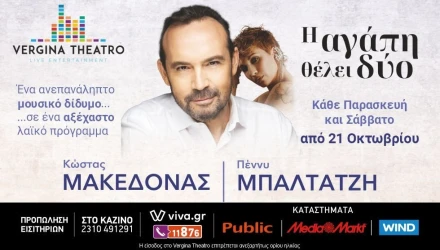 «Η αγάπη θέλει δύο» στο Vergina Theatro - Κώστας Μακεδόνας - Πέννυ Μπαλτατζή