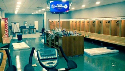 Περίπου 60 άτομα στοιβάχτηκαν για ώρες μέσα στα αποδυτήρια, την ώρα που και τα μέλη της ομάδας της Γαλλίας αρνήθηκαν να αποχωρήσουν από το γήπεδο πριν τους συναδέλφους τους, σε ένδειξη αλληλεγγύης και συμπαράστασης. Μάλιστα, οι παίκτες και τα μέλη των αποστολών καταπολέμησαν την πείνα τους τρώγοντας hot dog, σάντουιτς και άλλα τέτοια «πρόχειρα» εδέσματα από τις καντίνες του γηπέδου.