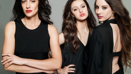 Η 15χρονη Νεφέλη και η 13χρονη Δανάη Λιβιεράτου ποζάρουν δίπλα στη μητέρα τους και έχουν τον αέρα επαγγελματία μοντέλου.