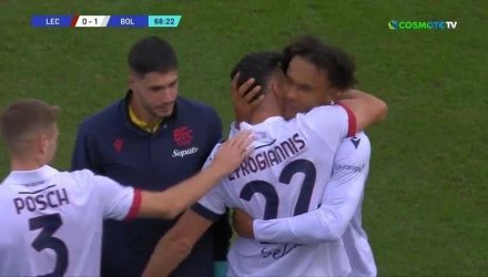 Στο 68ο λεπτό η Μπολόνια κέρδισε φάουλ έξω από την περιοχή της Λέτσε, σε ιδανικό σημείο για το αριστερό πόδι του Λυκογιάννη, με τον 30χρονο Έλληνα να στέλνει τη μπάλα στο "παραθυράκι" και τον αντίπαλο τερματοφύλακα να παρακολουθεί την πορεία της μπάλας.