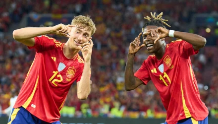 Ο Λαμίν Γιαμάλ σκόραρε δύο φορές, δείχνοντας τον δρόμο για τους Ισπανούς , με τους Νίκο Γουίλιαμς και Μερίνο να είναι αυτοί που άνοιξαν το σκορ κάνοντας το 2-0 στο 23΄ και στο 26'. Το 3-0 άνηκε στον 17χρονο σταρ της Μπαρτσελόνα που έκανε και το 5-0, ενώ νωρίτερα το 4ο γκολ της Ισπανίας το έκανε ο Πέδρι.