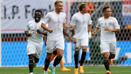 Η Ιταλία επικράτησε με 3-2 επί της Ολλανδίας, στον μικρό τελικό του Nations League, για την τρίτη θέση της διοργάνωσης, σε ένα χορταστικό παιχνίδι, με τους "οράνιε" να πιέζουν στα τελευταία λεπτά για την ισοφάριση, αλλά το σφύριγμα της λήξης βρήκε νικήτρια την ομάδα του Ρομπέρτο Μαντσίνι.